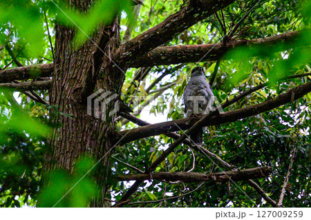 大樹の枝にとまるオオタカ