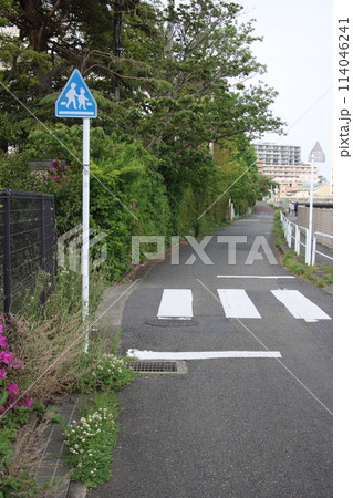 日本の横浜都市景観 「自転車及び歩行者専用道路」標識=横浜市内