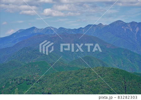 熊伏山青崩の頭からの南アルプス深南部の山々