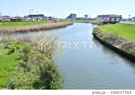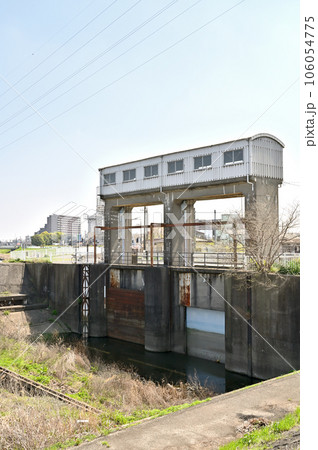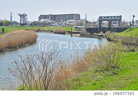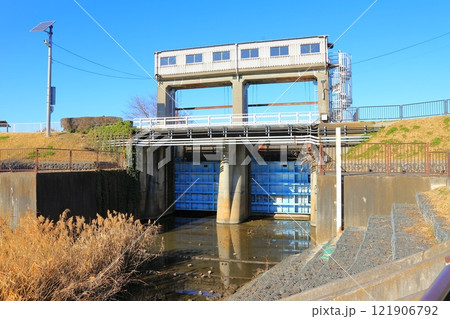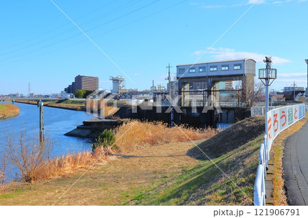 青木水門 埼玉県東部を流れる一級河川の芝川と旧芝川を分かつ水門 埼玉県川口市の水辺風景