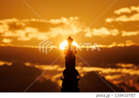 ホタテ観音と釜臥山・冬(青森県横浜町)