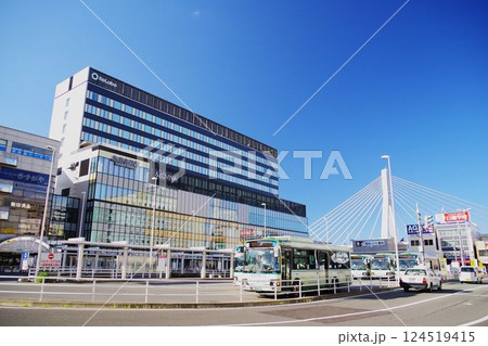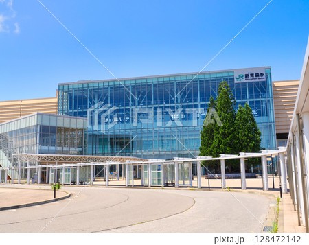 美しい快晴の青空の新青森駅(夏)東口・青森県青森市
