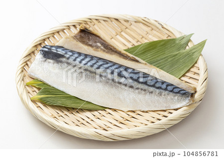 笊に乗った塩鯖 白バック
