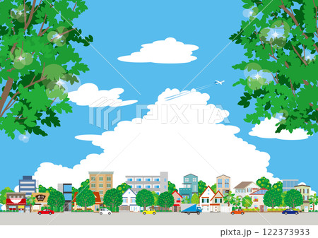 新緑の街並みイラスト.