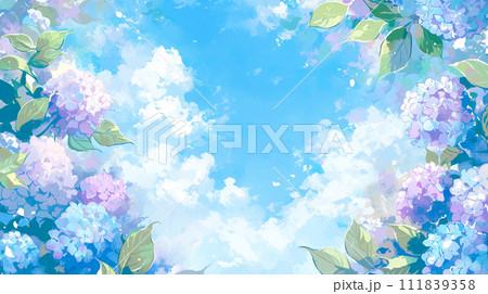 バナー 夏 梅雨 アジサイ あじさい 紫陽花 フレーム テンプレート デザイン 背景 イラスト素材