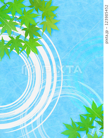 新緑のモミジと水紋のイラストフレーム背景素材