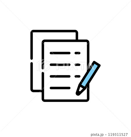Stylized multicolored pencil icon, featuring a red body and blue tip.