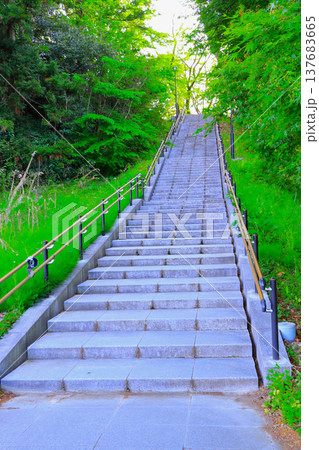 清々しい新緑と仙台城二の丸へ続く扇坂