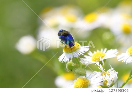 ヒメジョオン(姫女苑)の花にとまるオオセイボウ(セイボウ)