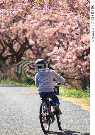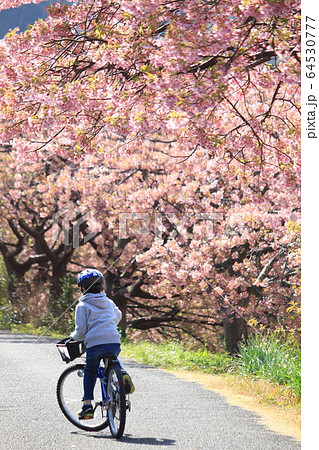 河津桜の並木道をサイクリング