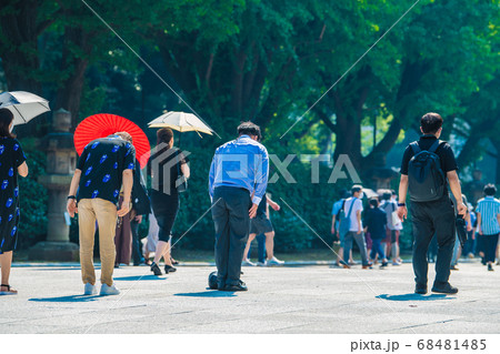 日本の東京都市景観 コロナ禍と猛暑の中、靖国神社を訪れた人たち=8月15日「終戦の日」