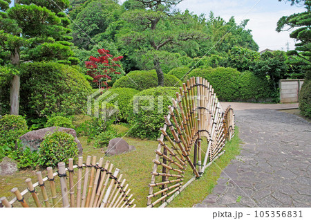 山口県下関市の毛利藩屋敷跡長府庭園竹のオブジェ