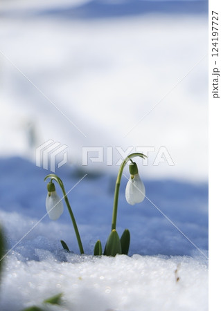 雪の中からひっそりと顔を出すスノードロップ-長野県駒ケ根市