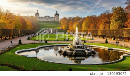 Autumn Landscape With Fountain and Palace - Generative Ai