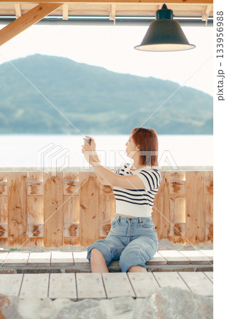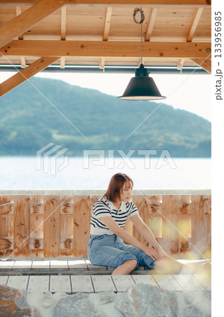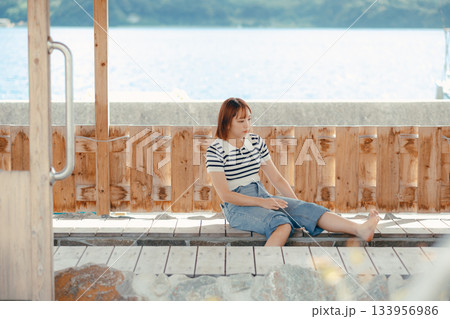 足湯でくつろぐ女性
