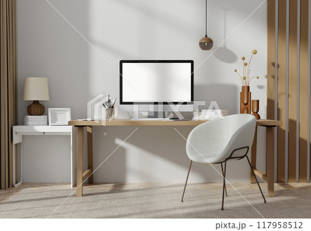 Elegant Office Desk with Computer and Chair - Professional Workspace 3D rendering