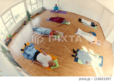 Senior Women Embrace Wellness: Yoga and Stretching in a Sunlit Space