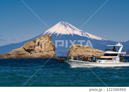 牛着岩越しから見る富士山 雲見海岸 西伊豆 松崎町