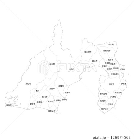 静岡県地図イラスト 市町村名あり 分割可能 無彩色Ver
