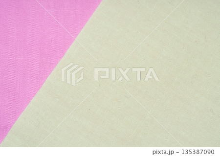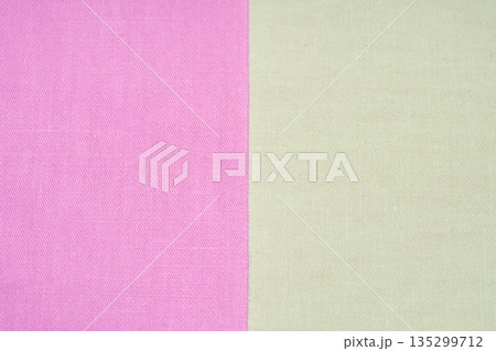 ピンクと淡い黄緑の布を並べたテクスチャー素材