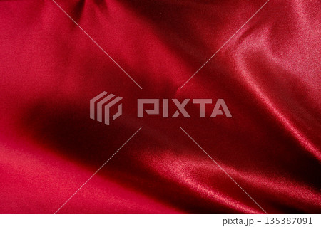 布のドレープが美しい赤色テクスチャー背景