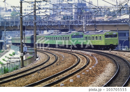 鉄道 国鉄 列車 113系 快速 非冷房 東海道本線 山崎 高槻