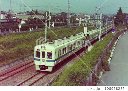 東急、田園都市線高津駅に到着する8000系非冷房の初期車5両、8004他、1979年5月1日
