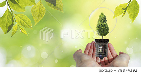 環境にやさしいエネルギー(二酸化炭素削減、地球温暖化防止、きれいな空気、木々)