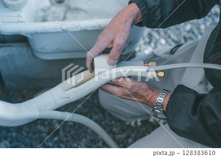 エアコン業者が切った被覆銅管の保温材