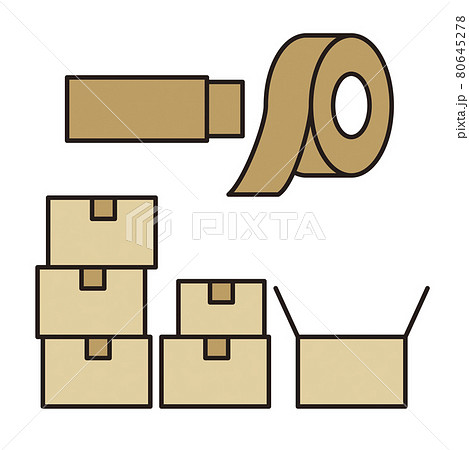 シンプル イラスト ガムテープと段ボール箱のベクターイラスト