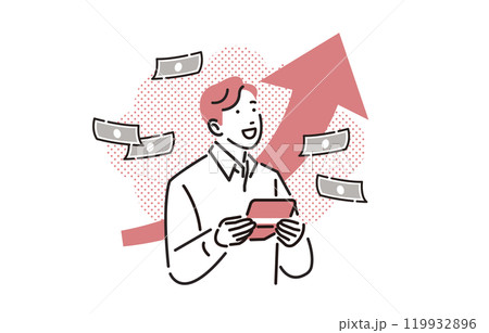 人物 貯金が増えて喜ぶ男性