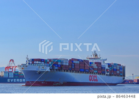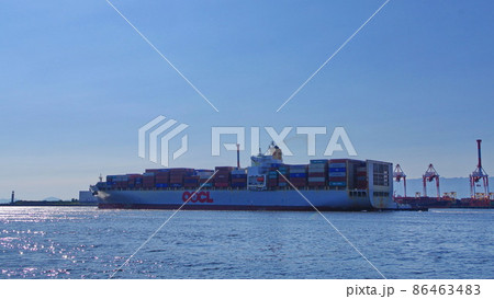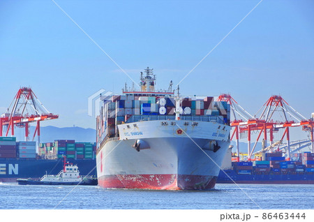 面舵一杯 夢洲ターミナルバースから出港するコンテナ船