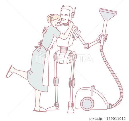 A Robotic Companion Gently Embracing a Human While Efficiently Operating a Vacuum Cleaner
