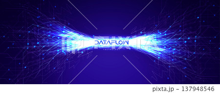 Abstract Digital Transformation AI Neuronal Connection Overflow Light Lines, Blue Neon Glowing Pathway. Innovate Neural Scientific Complex Researching. Neuro Science Research. Vector Illustration
