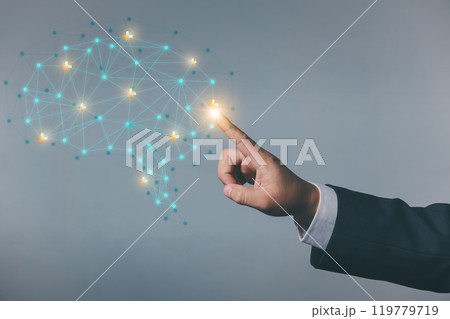 Hand Holding Human Brain: A Futuristic Concept of Intelligence, science and mind.