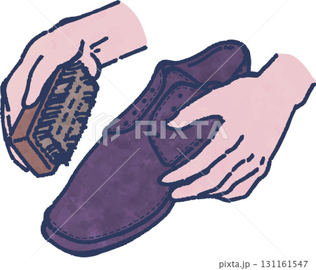 革靴をブラッシングしているイラスト