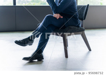 ビジネス 男性 (ボディパーツ 顔なし 人物 仕事 出勤 足 靴 スーツ 玄関 家 夜)