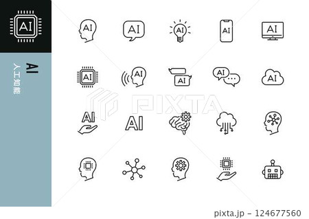 いろいろな人工知能のシンプルアイコンセット、ベクター