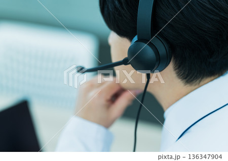 シニアと会話する男性オペレーター 表情セット 笑顔
