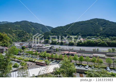 高台から見た大井川鉄道千頭駅と道の駅音戯の里の風景(静岡県)