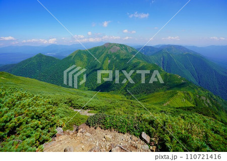 北海道大雪山山系 三国山山頂部より 石狩岳 ニペソツ山 ウペペサンケ山 十勝川水系方面を望む