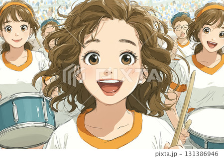 美優シリーズ:マーチングバンド美優シリーズ:高校生、マーチングバンドのドラムラインメンバー