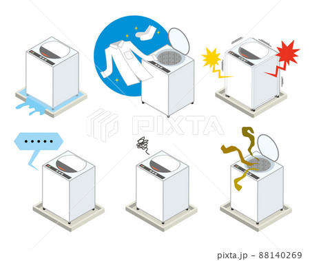 アイソメトリックなエアコンの室外機の色々なトラブルの素材セット