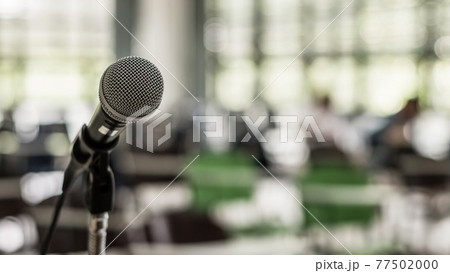 Microphone voice speaker in business seminar room