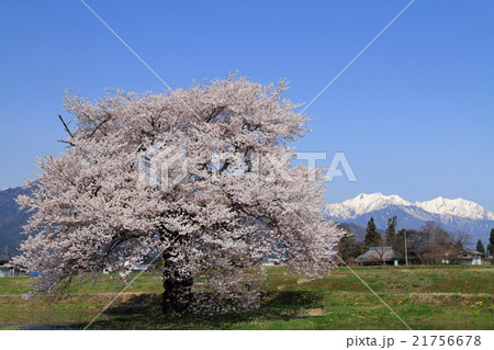 桜と北アルプス 須沼の一本桜