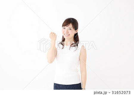 ガッツポーズ 応戦 女性 白バック