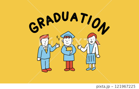 卒業生をねぎらう両親・先生・講師のイラストレーション