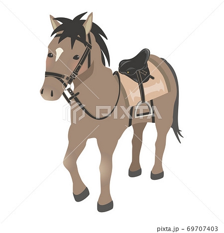 乗馬イメージ 馬具をつけた馬のセット