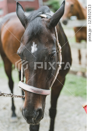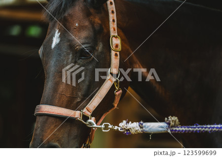 乗馬イメージ 馬具をつけた馬 茶色