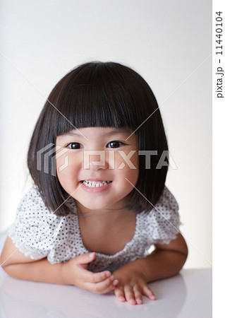 テーブルの前の女の子